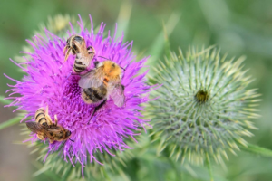 Wildbienen auf Kratzdiestel (Cirsium vulgare)